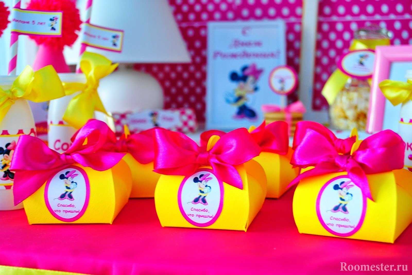 День рождения станет еще интереснее, если дети-гости именинника получат на празднике маленькие подарки. Вы можете положить в коробочки для сладких сюрпризов несколько шоколадных конфет, миниатюрные пирожные или вручить каждому гостю маленькую мягкую игрушку.