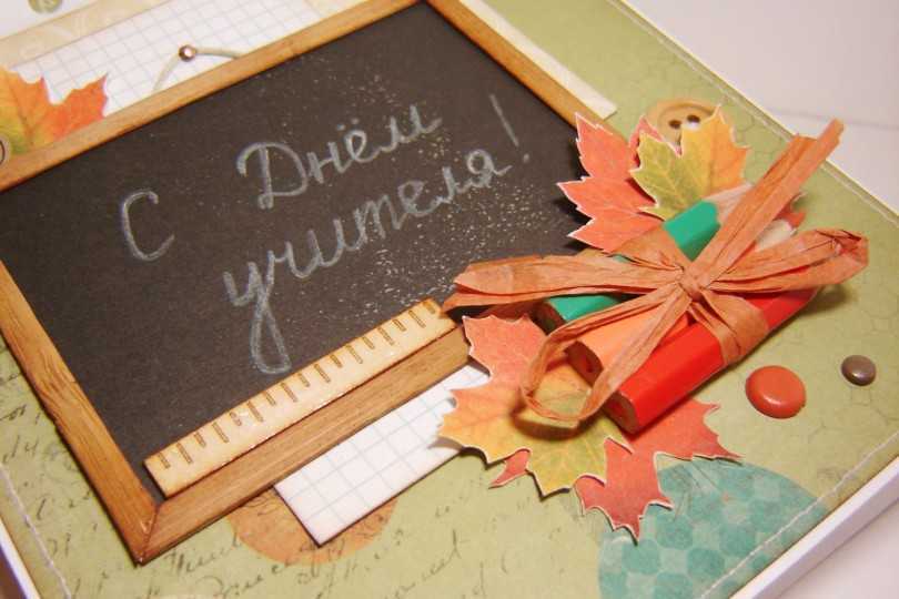 Простая открытка будет прекрасным дополнением к коробке конфет. Они могут быть в виде аппликаций, объемными, яркими и осенними, с использованием только бумаги или применением природного материала. Рассмотрите несколько вариантов создания самодельной аппликации ко дню учителя.